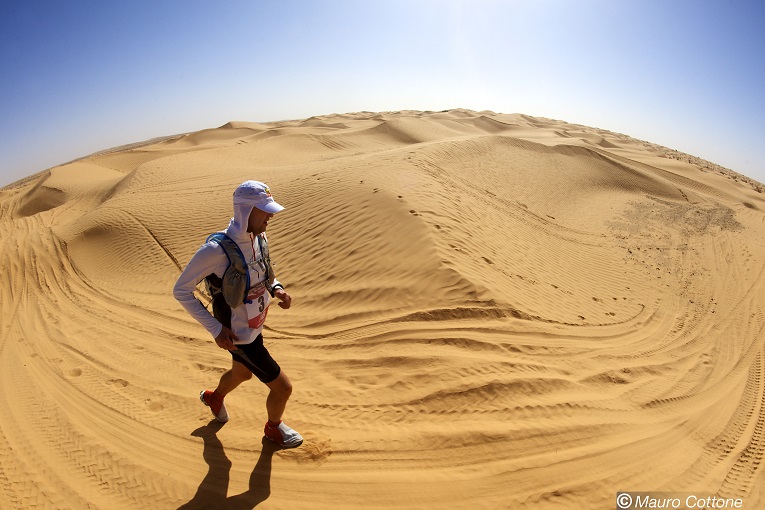 small_AA10425The agony starts at 32km. The burning sun of Sahara has sucked all the energy out of me. The feet go numb at every step. The renewed knee injury causes sharp pain and considerably limits it’s mobility, which makes further running like putting a quart into a pint pot. What can I do? 80km more to run in this state? Impossible! Sheer desperation. It’s over. Hundreds of hours of training. Was all this hustle for nothing?