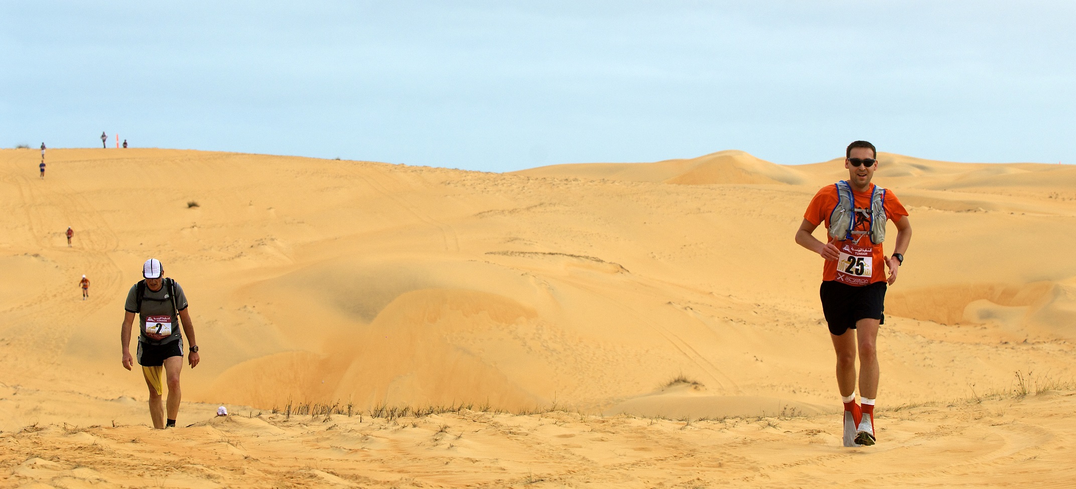 First leg of 11km starts at 8am. We need to get up early to get prepared and eat something before the race. It is all in the dunes race, right from the beginning to the very end. Good I have prepared in the Dunes of Maspalomas in Gran Canaria, so the extreme taxation in the dunes isn’t a surprise for me. What surprises me is the speed people attack the leg. I am very quickly in the red zone and decide to run with my own speed. Surprisingly also I am not the last. From time to time there are children from the neighbouring villages cheering us. Especially the many Italian organizing staff shouting along the course: “Bravi! Bravi! Signiori maratoni!” give me additional energy boost.
